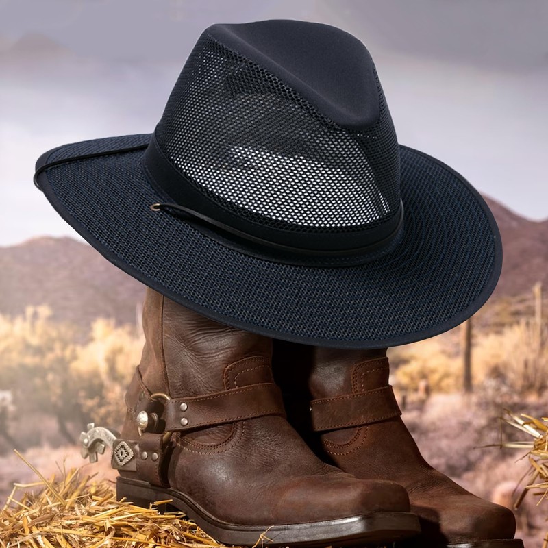 - [Sombrero australiano de alta calidad] Experimenta durabilidad y estilo con nuestro sombrero de malla para el sol. Obtén un valor inmejorable con un diseño sin arrugas y sin arrugas que mantiene su forma. Mantente fresco y cómodo en el calor con tela transpirable y ventilación de aire integrada.