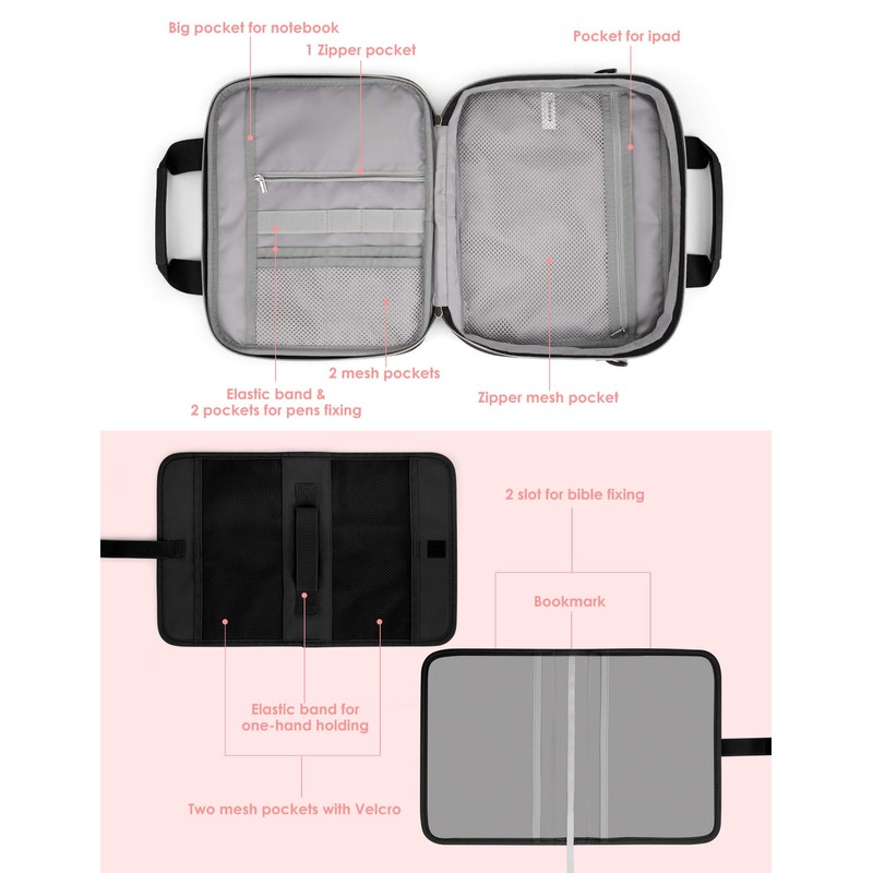 - Not Just a Bible Bag: Heouvo bible bag go with well-padded handle and removable shoulder strap. You can take it with ease even the bag is full, or handsfree by shoulder strap. It is not just a bible tote bag, but also can be used as briefcase, makeup bag, tablet case, Bible study bookbag, etc. You can carry it to churches, schools, libraries, and study rooms at any time for your bible study, worship, or pilgrimage