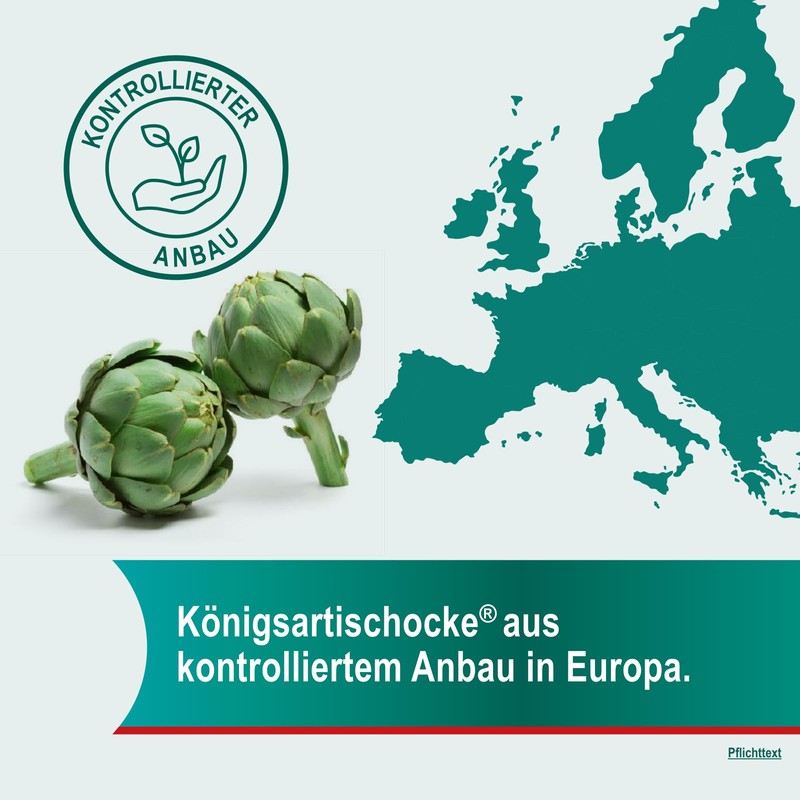 Ingredients: active ingredient each1 capsule: 320 mg artichoke leaves dry extract (4-6:1); extractant: water Other ingredients: hypromellose, lactose-1 water, magnesium stearate, highly dispersed silicon dioxide, talc, titanium dioxide, quinoline yellow, brilliant blue FCF; adults and teenagers from 12 years. 2 times daily 2 capsules. Take the capsule whole with enough liquid (preferably a glass of water) at the main meals. The duration of use of the drug is in principle not limited and depends on the course of the complaints. However, in case of complaints lasting more than 1 week, medical advice should be seeked.