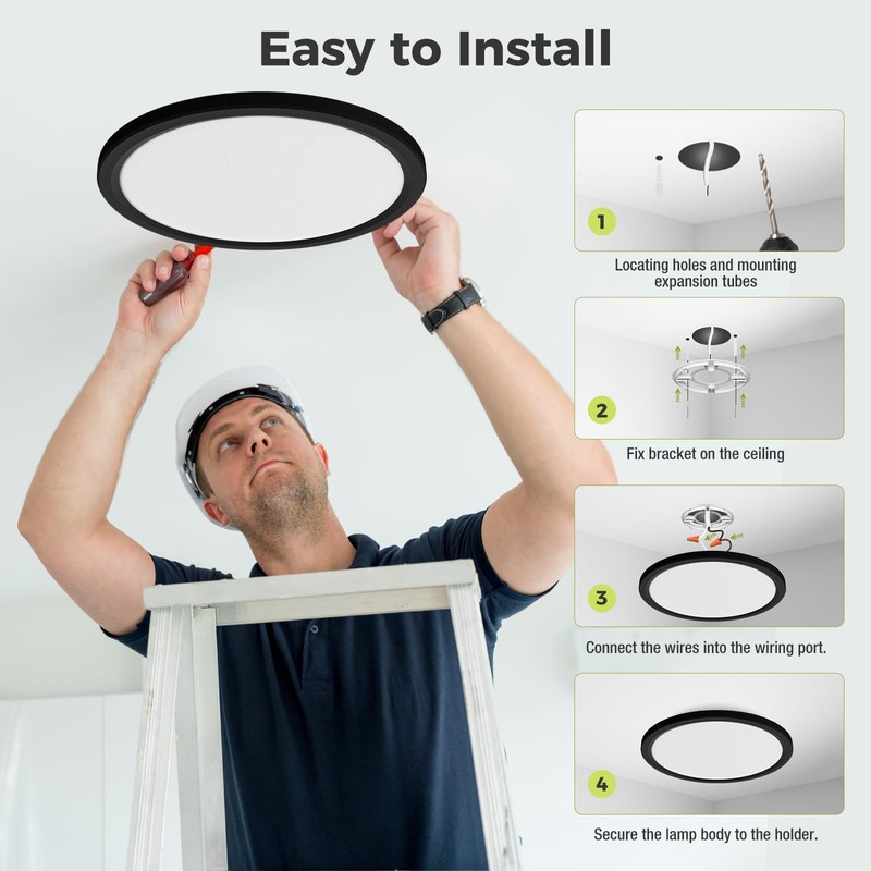 • 【Energy-saving and Durable】With 24W power and 3200LM brightness,this low profile ceiling light has low energy consumption , which can save your home electricity bills by replacing your old lighting fixtures . No flicker, no blue light, natural and soft lighting source care for your family