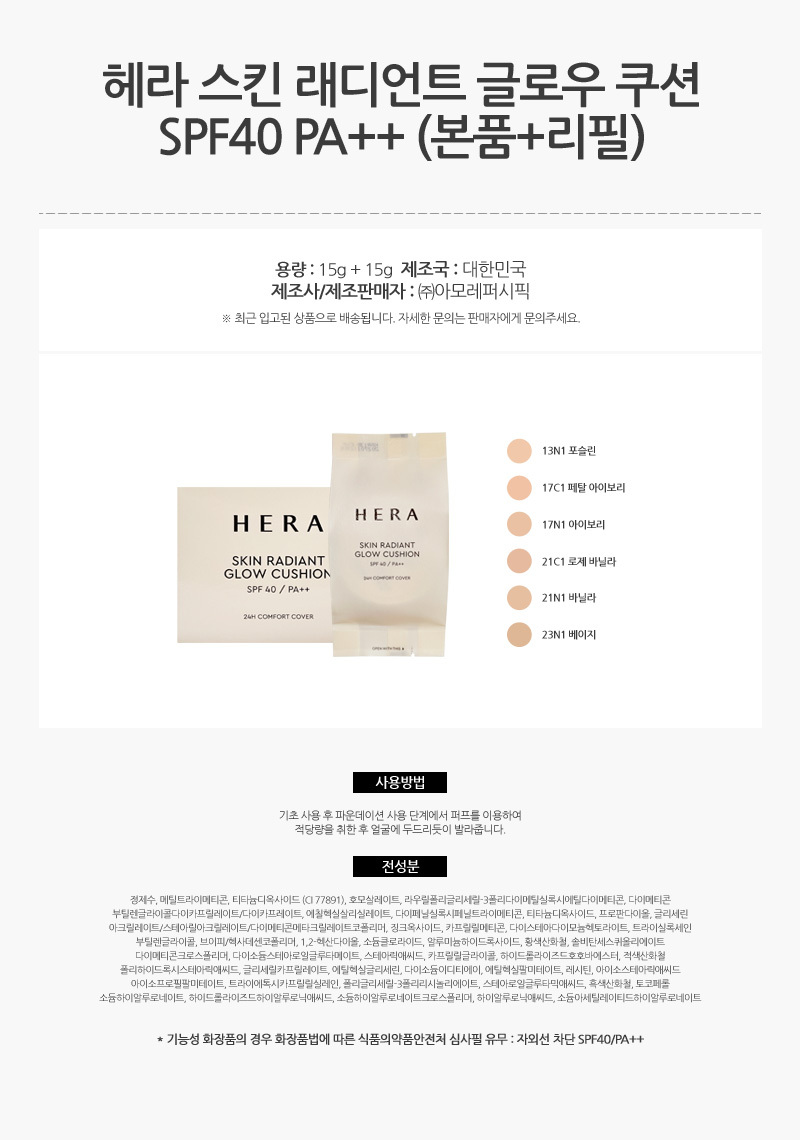 헤라 스킨 래디언트 글로우 쿠션 (SPF40) 본품+리필