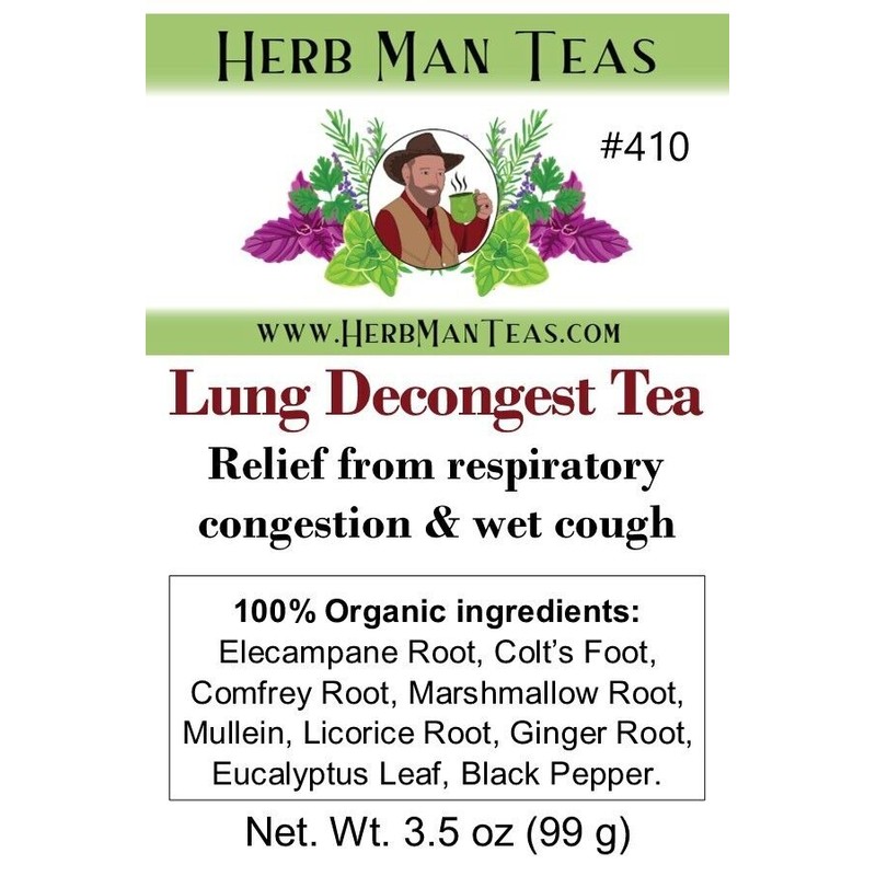 Note: Herbman also makes COUGH TEA for dry cough or sore throat with no mucus. Additionally, he makes ALLERGY TEA for seasonal or environmental allergies with runny nose, sneezing, watery eyes, etc.