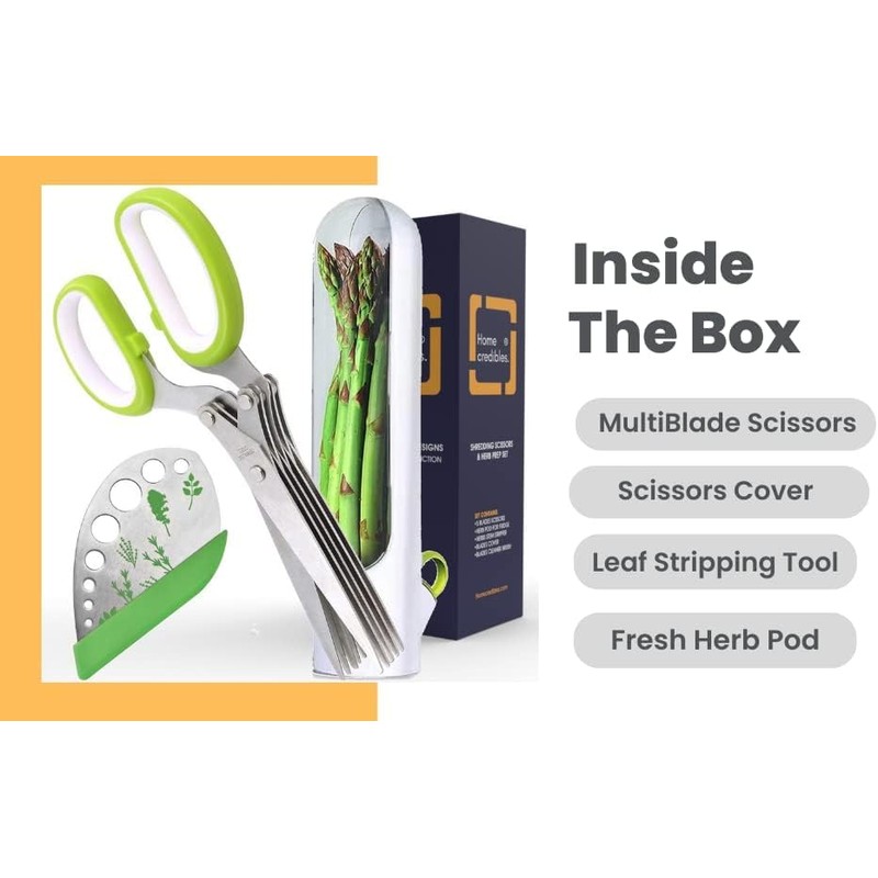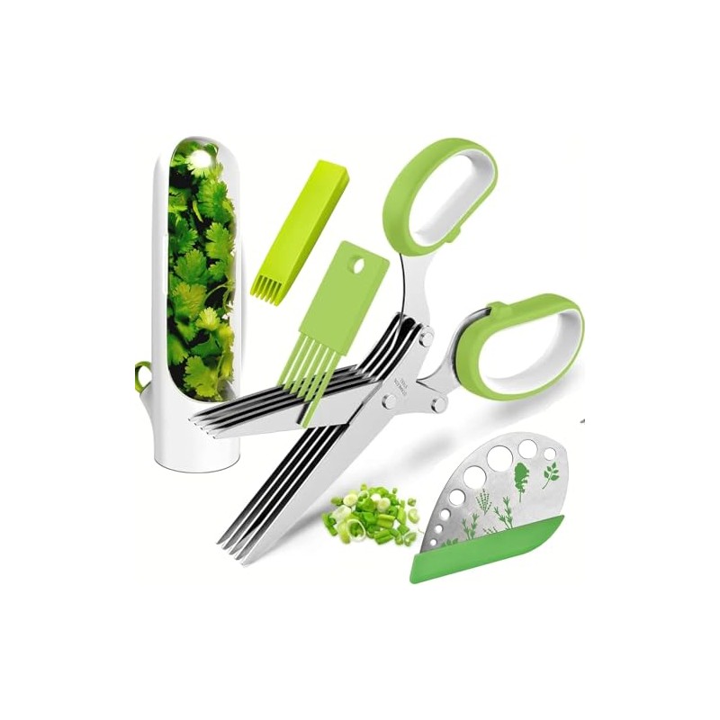- SAVES TIME Reduce your Food Prep time by using Our Herb scissors with 5 Blades. This smart Kitchen gadget makes the Shredding and chopping job done quickly and safely