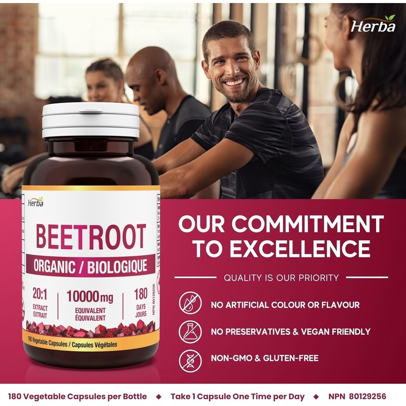 Herba 10,000mg Organic Beet Root Supplement – 180 Capsules | 20:1 Beet Root Powder in Capsule | Nitric Oxide Supplements for Men & Women | Made in Canada