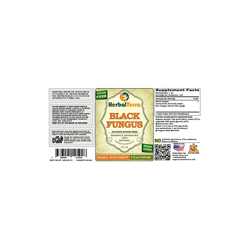 Herbal Terra LLC Black Fungus (Auricularia Auricula-Judae) Dried Mushroom Liquid Extract 4x4 oz