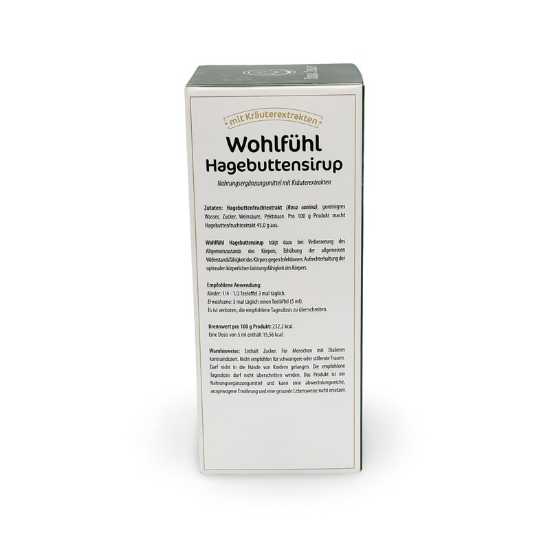 ProduktbeschreibungenEntdecken Sie den Wohlfhl Hagebuttensirup von Herbal Therapy - eine sorgf?ltig komponierte Nahrungserg?nzung mit wertvollen Kr?uterextrakten. Die 200ml Flasche enth?lt einen hochwertigen Sirup, der die natrliche Kraft der Hagebutte mit ausgew?hlten Kr?utern vereint. Der Sirup zeichnet sich durch seinen angenehmen Geschmack aus und l?sst sich bequem in den t?glichen Ern?hrungsplan integrieren. Die praktische Flasche mit Schraubverschluss gew?hrleistet eine einfache Dosierung und sichere Aufbewahrung. Als Nahrungserg?nzungsmittel untersttzt dieser Sirup Ihr allgemeines Wohlbefinden auf natrliche Weise. Die traditionelle Rezeptur basiert auf der bew?hrten Kombination von Hagebutten und Kr?uterextrakten, die seit Generationen gesch?tzt wird. Ein hochwertiges Produkt fr alle, die Wert auf natrliche Nahrungserg?nzung legen.Inhaltsstoffe / ZutatenHagebutte,
