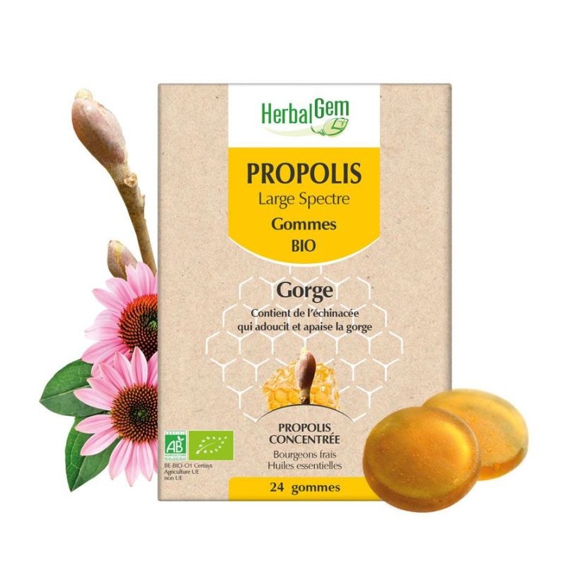 Herbalgem Propolis Large Spectre Gommes Bio Gorge 24 Gommes