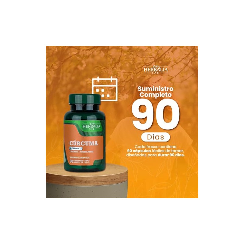 Herbalia Lab  Crcuma Potenciada con Pimienta Negra y Omega 3, Bienestar y Vitalidad - 90 Cpsulas - Producto Original de Alta Calidad, Entrega Rápida y