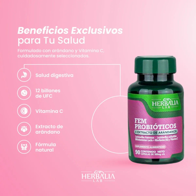 ¡Cuida tu salud de adentro hacia afuera con Herbalia Lab Probióticos para Mujer! 🌸🍃 Este suplemento avanzado está formulado con probióticos y extracto de arándano para mantener tu sistema digestivo y urinario en óptimas condiciones, todo ello sin sabor para mayor comodidad 💧🌿.
