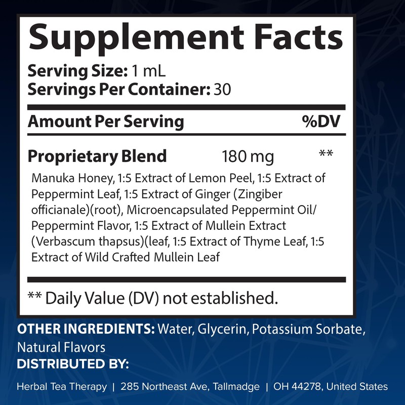 Herbal Tea Therapy Lung Renew Mullein Drops for Lungs (1 fl. oz.): Peppermint, Thyme, & Mullein Leaf Extract for Lungs Detox & Daily Respiratory Comfort - GMO-Free & Made in USA