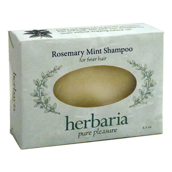 Herbaria Rosemary Mint Shampoo Bar for Finer Hair handcrafted all-natural soap with essential oils. Enjoy our other skin-friendly products.