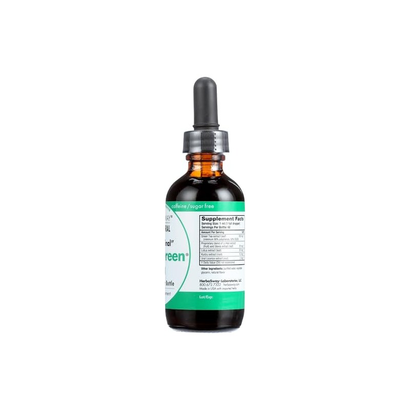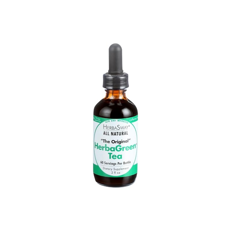 HerbaSway's Original HerbaGreen Tea is a unique combination of green tea, kudzu root and lotus leaf that provides powerful antioxidants from different sources in a delicious tea concentrate. This tea is naturally decaffeinated and has a delicate lemon flavor. One cup of HerbaGreen tea provides the antioxidant power of up to 15 times that of brewed green tea. Supports a weight loss and dieting program. No calories, no sugar, all-natural and no artificial sweeteners or preservatives. One 2oz bottle of Original HerbaGreen Tea contains 60 servings to be diluted in any hot or cold beverage. It is perfect for school, office, at home or on the go, for kids young and old.