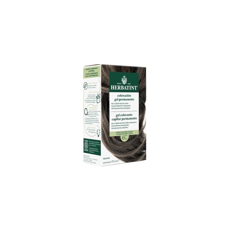 Herbatint Permanent Hair Colour 6C Dark Blonde Ash, 170 ml, No Ammonia, Optimal Grey Coverage, Dermatologically Tested with 8 Natural Extracts