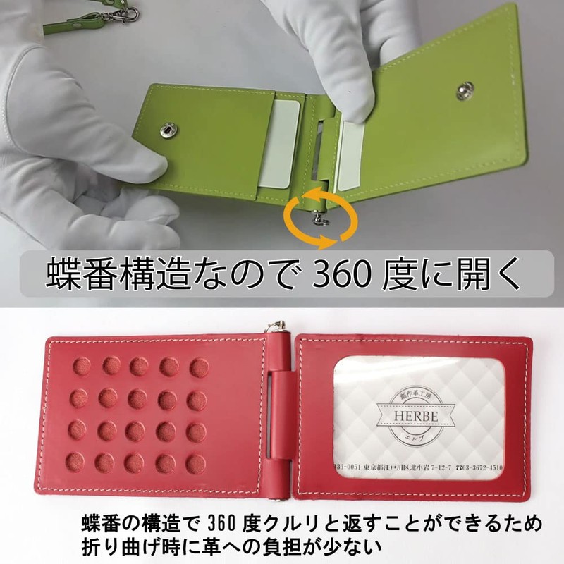HERBE Pass Case, 4 Side Storage, Cowhide Leather Reel Strap, Rotatable, Made ...