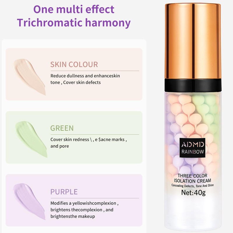 Product descriptionSkin Perfecting Primer Vegan Friendly Make Up PrimerFeature:1.Protect Skin—This primer for dry skin forms a protective film on the surface of the skin, isolating cosmetics. Face primer for dry skin effectively protects the skin. 2.Long-Lasting—This make up glow primer ensures that your makeup lasts all day without getting greasy. 3.Colour Corrector—The makeup primer for dry skin improves grey and dull skin. Makeup primer for mature skin correct skin tone, brighten and smooth skin. 4.Invisible Pore—The green face primer effectively covers and reduces the appearance of enlarged pores, acne marks, fine lines and wrinkles for smoother skin.Directions1. Blend evenly on face and allow to dry before applying makeup. Perfect for all skin types. 2. Protect Skin—This primer forms a protective film on the surface of the skin, isolating cosmetics. Face primer effectively protects the skin. 3. Long-Lasting—This make up primer ensures that your makeup lasts all day without getting greasy. 4. Colour Corrector—The makeup primer improves grey and dull skin. Makeup primer corrects skin tone, brighten and smooth skin. 5. Invisible Pore—The green face primer effectively covers and reduces the appearance of enlarged pores, acne marks, fine lines and wrinkles for smoother skin.Safety Warningno