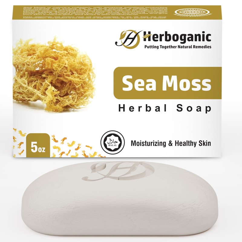 HERBOGANIC Sea Moss Herbal Soap | Natural Bar Soap for Moisturizing and Healthy Skin | Infused with Sea Moss | Gentle for Men and Women | 5 Oz (Pack of 1