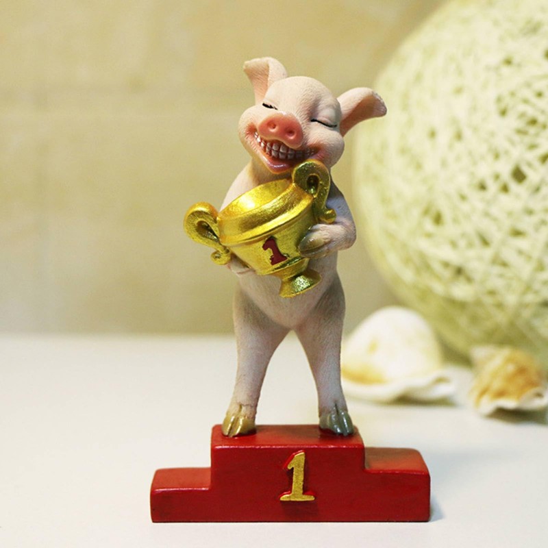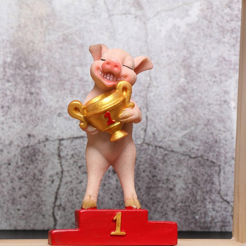 HERCHR Mini Pig Trophy Figurine Funny Cartoon Pig Statue Resin Cute Animal Sculpture Home Decoration For Bookshelf Table