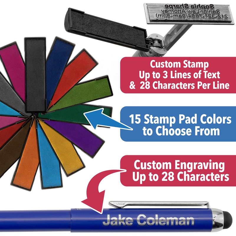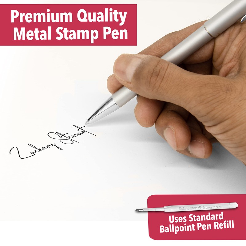 - This elegant writing instrument acts as a 2-in-1 device: Pen + Stamp.