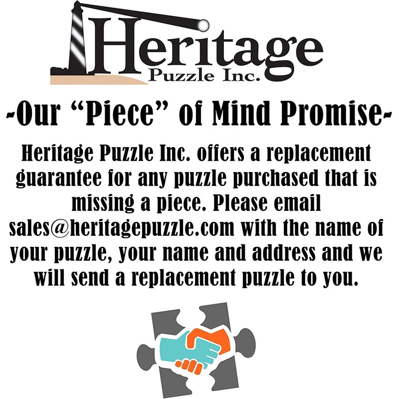 - The Heritage Puzzle Guarantee: All our puzzles are warranted against defects in manufacture and workmanship. If any puzzle has a missing piece, you may contact Heritage, and we will gladly replace your puzzle, so you never have to leave anything unfinished again.