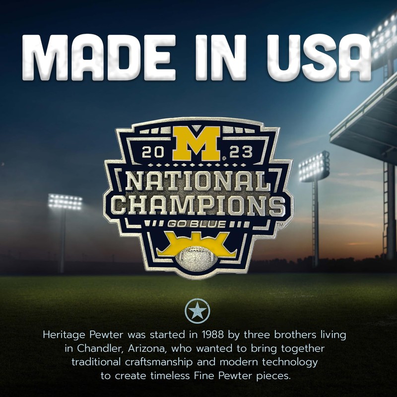 Heritage Pewter Michigan Wolverines 2023 CFP National Champions Pint Beer Glass | 16 Ounce Water Glass | Intricately Crafted Metal Pewter