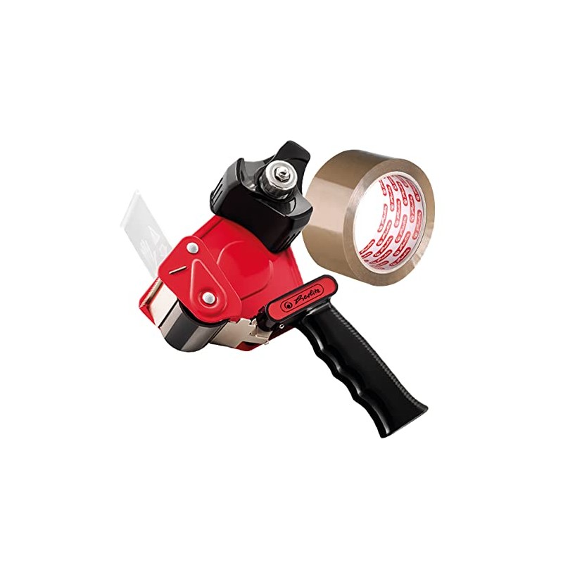 Herlitz Packing Tape Brown 66 m x 50 mm Low Noise Parcel Tape (1 Roll & 1 Dispenser)
