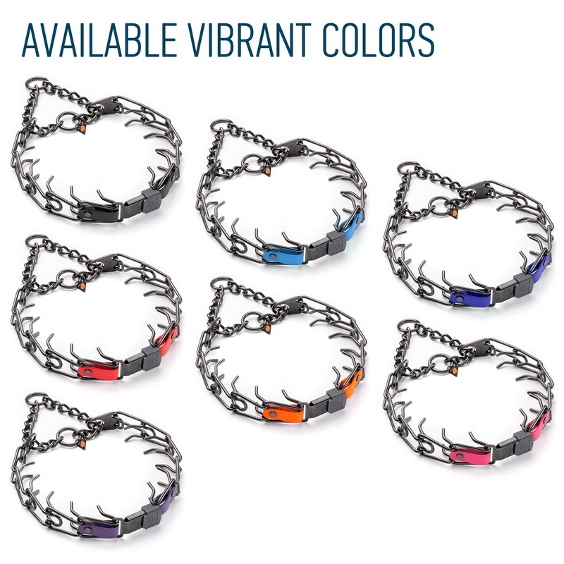 - Herm Sprenger Black Stainless Steel Prong Collar: This training prong dog collar features a Herm Sprenger Click Lock Buckle, O-Ring and U.S. made Biothane insert for stability and security of the buckle connection with the prongs