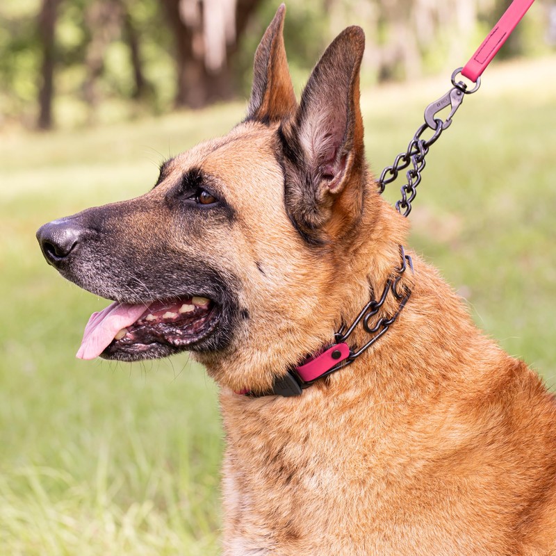 Herm Sprenger Black Stainless Steel Dog Collar with Quick Release ClicLock Buckle O-Ring Biothane Insert Training Collar Made in Germany (Passionfruit Pink, 25in x 4.0mm(Neck Size up to21-22in))