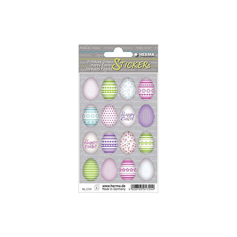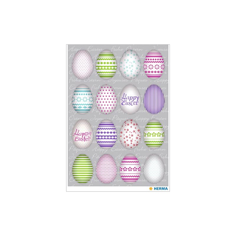 - Box contents: 48 x HERMA Happy Easter stickers (3 sheets each 16 stickers) – colourful eggs