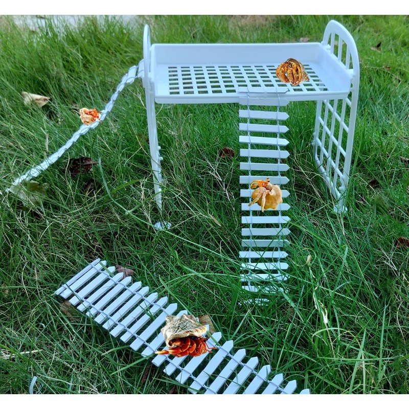 - ✔【Easy to install】Our hermit crab climbing toys can be used in two different ways.Installation Steps please see Picture No.3 and No.4 .The 2-Layers habitat height can be adjustable and the ladder can be can cut to any length by yourself.