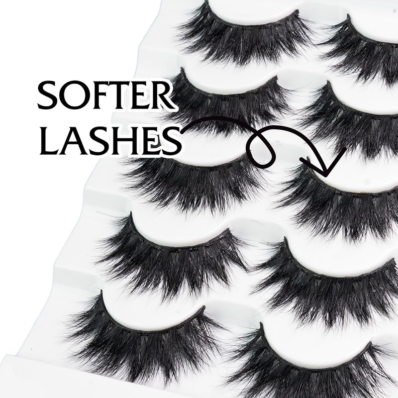 Hermosa Miami Maven, 3D Mink Hermosa Lashes with Doll Eye Shape, Fluffy Hairs and Black Cotton Band, Real Mink Materials, 5-Pair Pack in one box, Reusable for 20+ times each pair DRD008