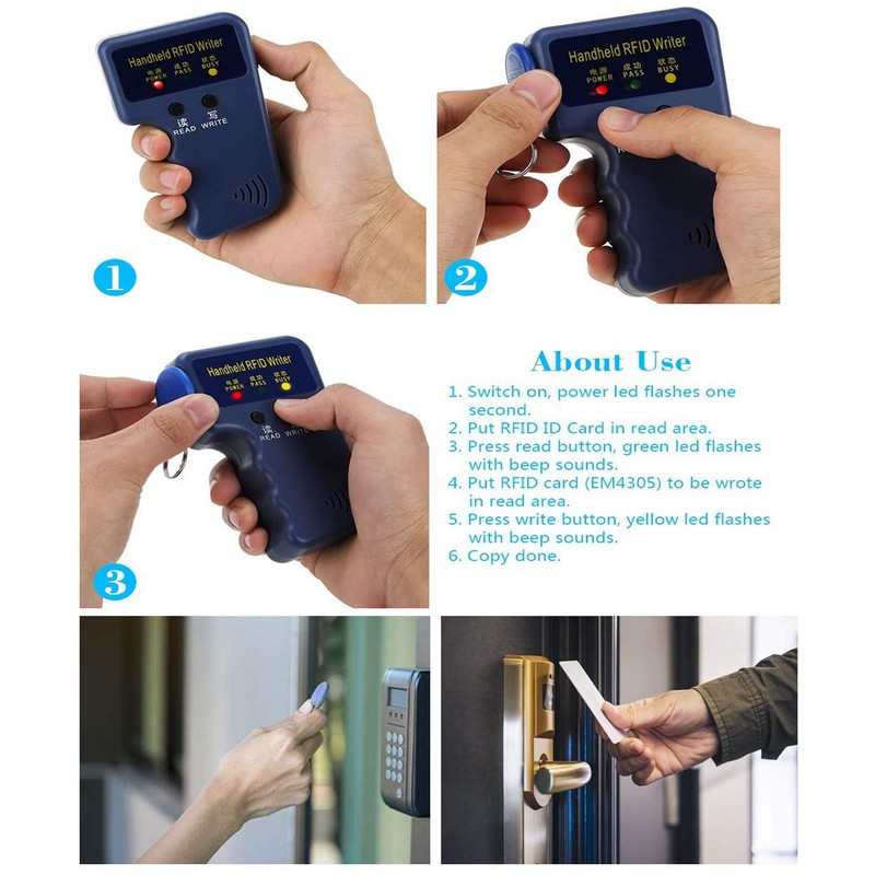 This item is a handheld RFID ID card writer, which can be used to copy 125KHz ID cards with our EM4305 cards easily.