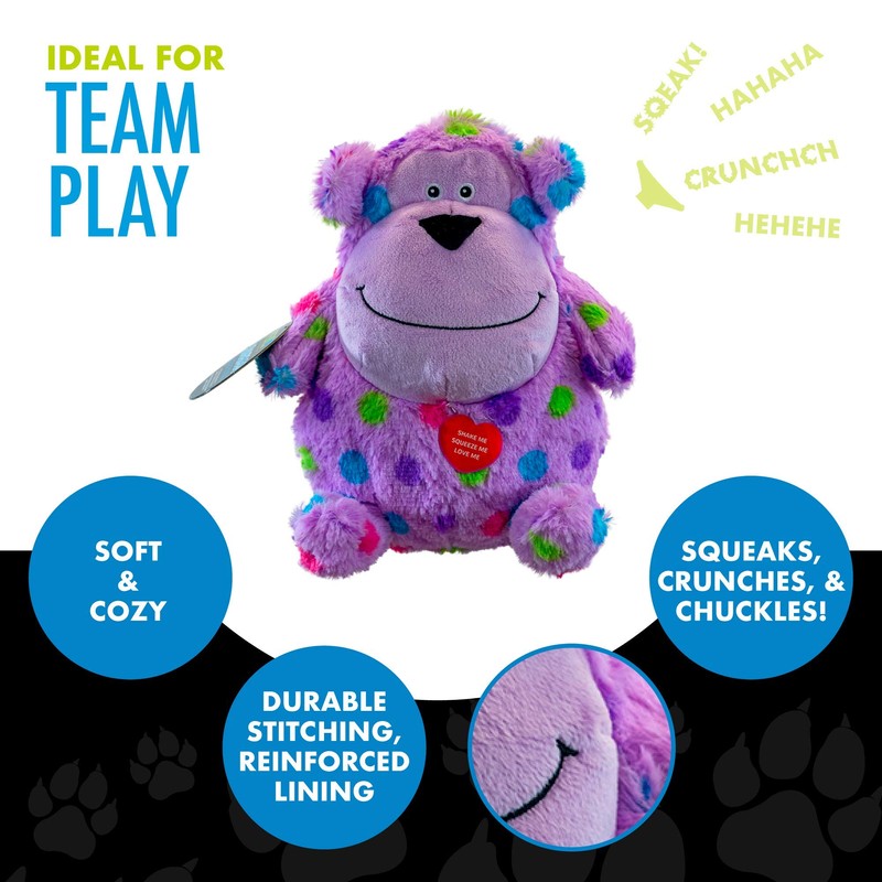 Hero Chuckle Bellies, Monkey Plush Dog Toy, Durable Stuffed Animal with 3-in-1 Squeaker