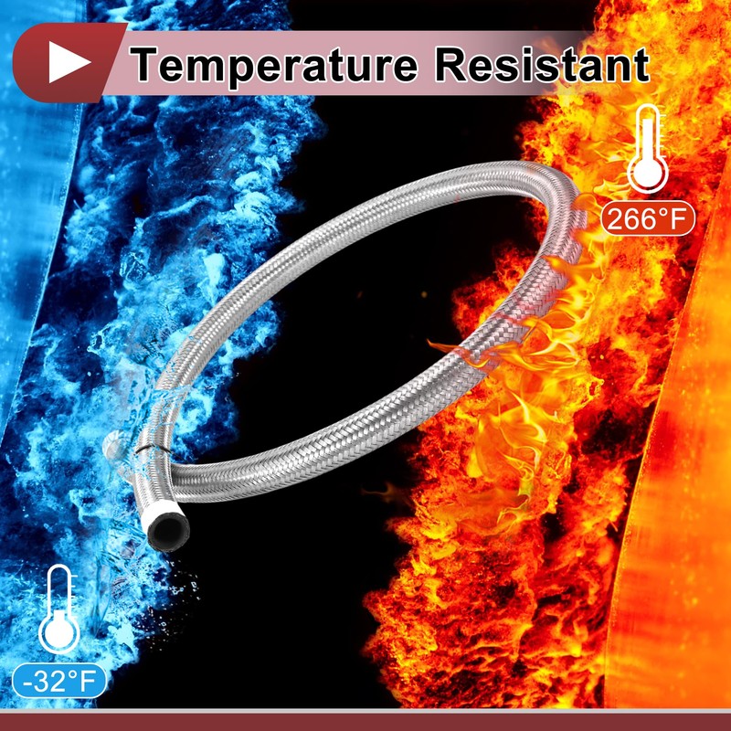 - Material:Work Pressure:1250psi, Burst Pressure:5000psi. The fuel hose is made of CPE Rubber,Stainless Steel Braided,which is durable and reliable,not easy to break or fade.
