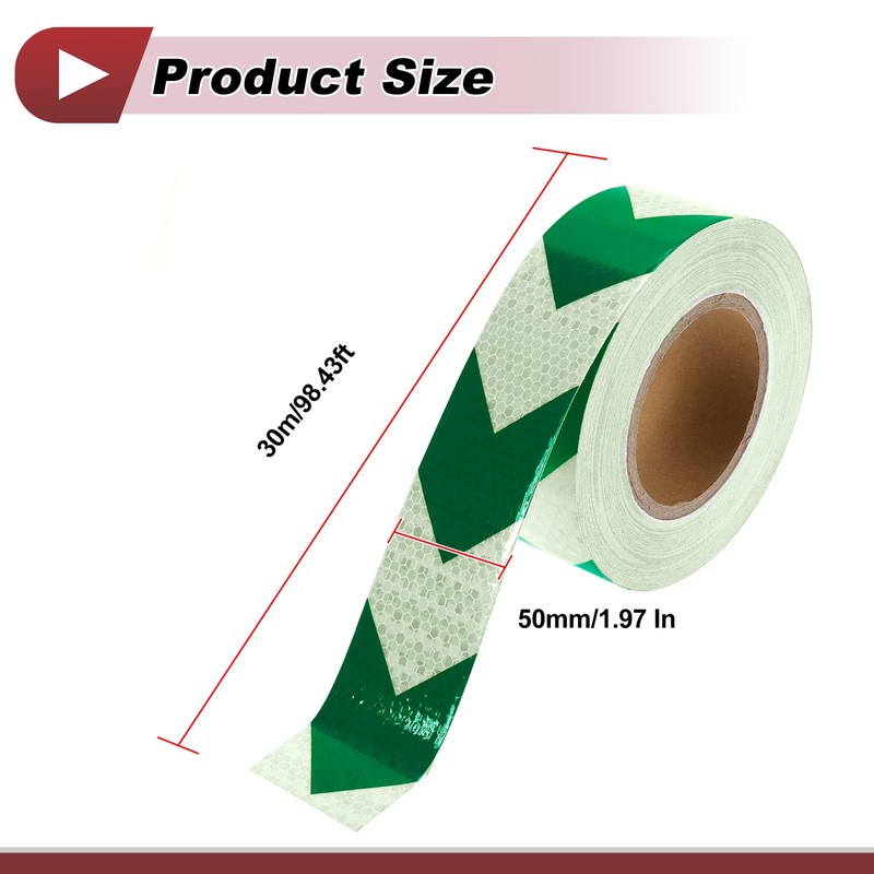 HEROFFIX 1 Pcs Safety Warning Reflective Tape Increased Visibility Reflective Strips 98.43ftx1.97" Green,White PVC