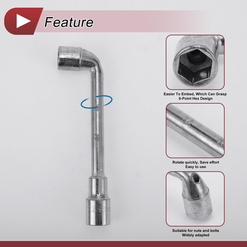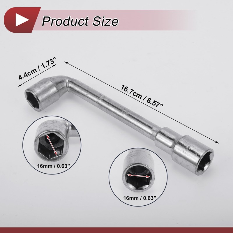 HEROFFIX 1 Pcs Socket Wrench Spanner Socket Remover 16.7x4.4cm Carbon Steel Hexagon 16mm for Car Motorcycle Dirtbike Repair L Shaped Wrench Sleeve Double Ended