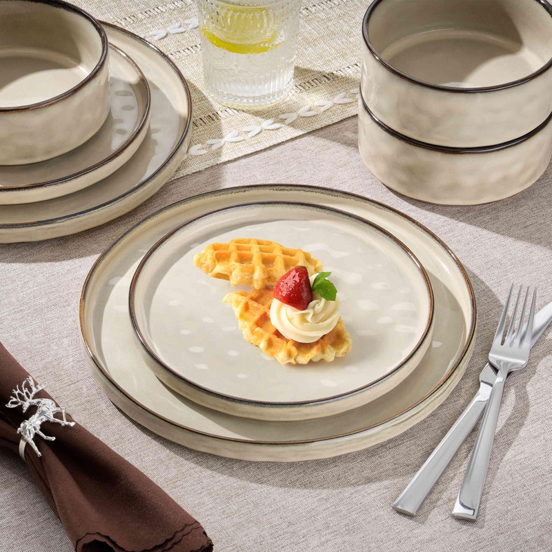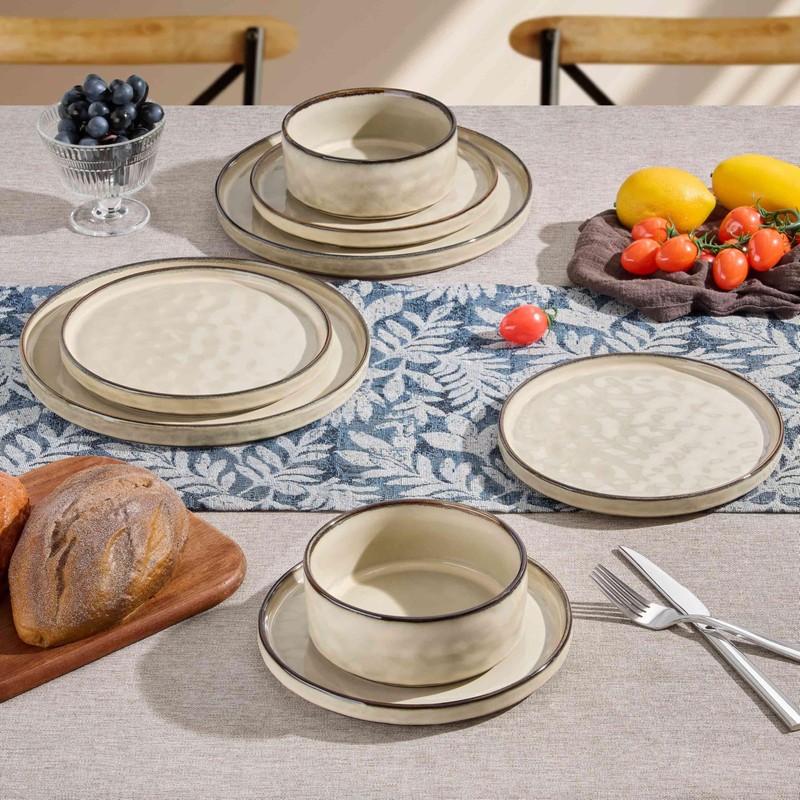 Herogo Dinnerware Dishes Sets for 4, 12 Pieces Ceramic Plates and Bowls Sets, Kitchen Dining Dishes, Dishwasher & Microwave Safe, Cream Khaki
