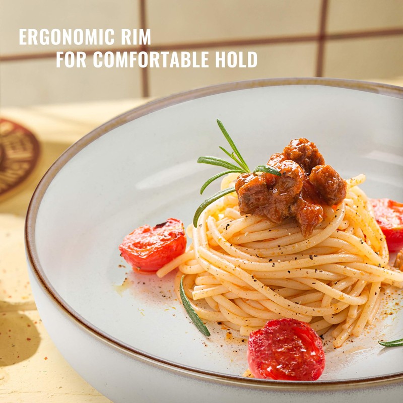 - Superior material and craftsmanship, made of natural clay and fired at high heat up to 2340°F, the pasta bowl is heat resistant and non-absorbent stoneware, it has the ergonomic rim for a comfortable grip, and its non-slip bottom prevents the bowls from slipping from your hand or table, ensuring its safety in use