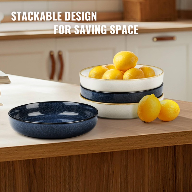 - Elegant and space-saving, with a wide and shallow modern design to prevent spills and mess, the serving bowls are designed to be stackable, easy to store and save space, enhance your dining experience with bowls that combine classic appeal with functional durability