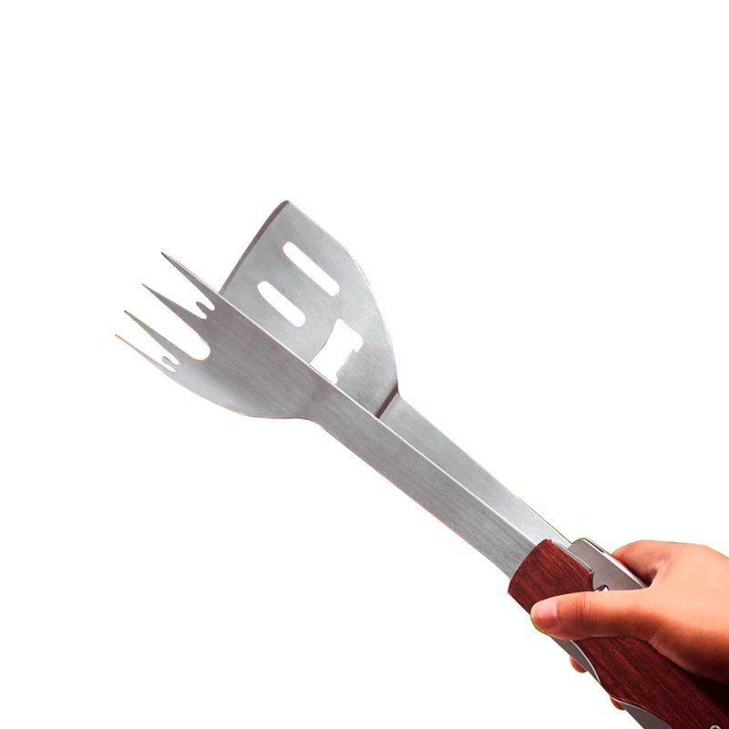 Herramienta Parrillera Swiss Grill de Glück 6 e 1, incluye Espátula, Trinche, Pinzas, Cuchillo, Destapador y Sacacorchos; Utensilio Multifuncional de Acero Inoxidable con Mango Ergonómico para Asador