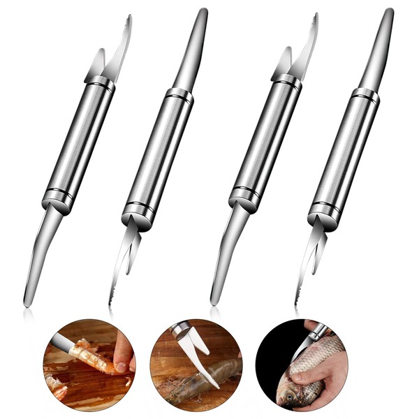 Herramienta Peladora de Camarones de Acero Inoxidable, 2/4 Pcs Línea de Camarones Cuchillos para Fauces de Pescado, Limpiador de Hilos de Camarones, Escamador de Pescado de Acero Inoxidable (4 piezas)