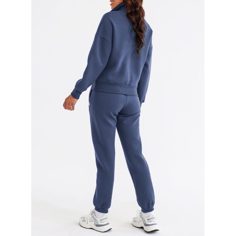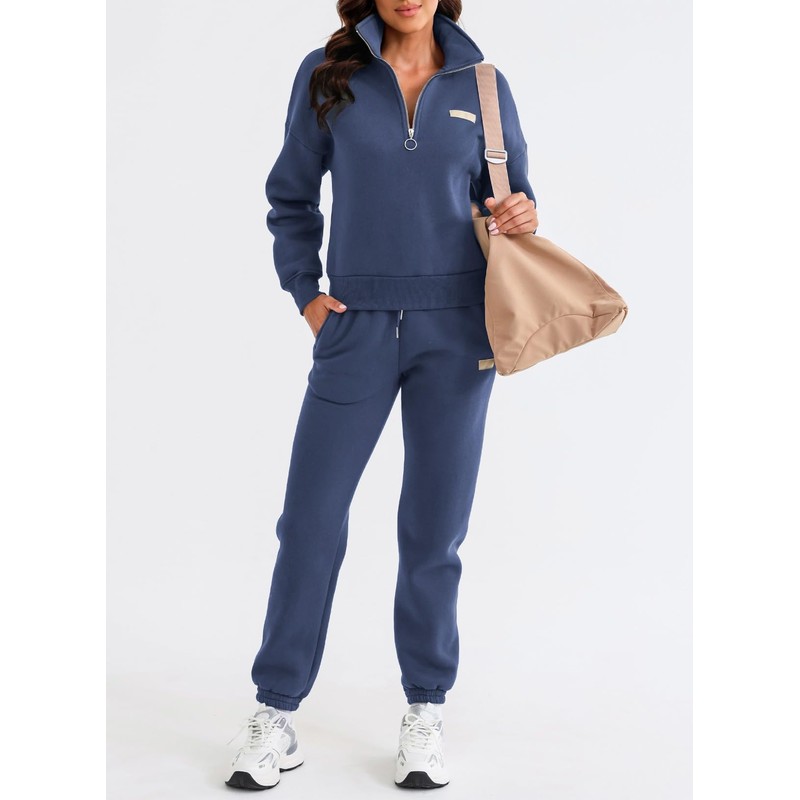 Herseas Women's Two Piece Fleece Sweatsuit Outfit Long Sleeve Plus Size Pullover Sweatshirt Drawstring Jogger Pants Lounge Set Navy Blue Medium 8 10