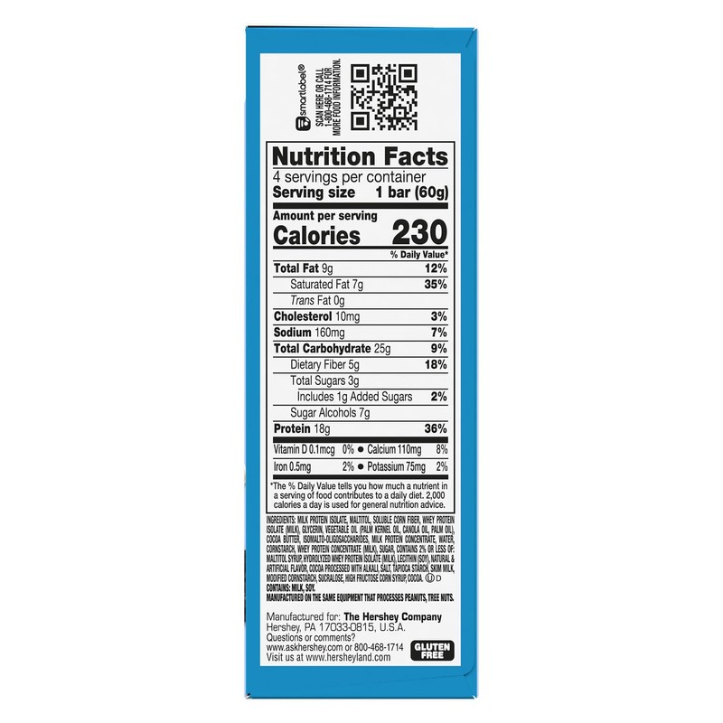 Hershey Cookies N Creme Protein Bar, 18g Protein, 4 Count - 18 Grams Protein Per Bar, Only 3 Grams Of Sugar Per Bar, 4 Count Of A 2.12 OZ Per Bar
