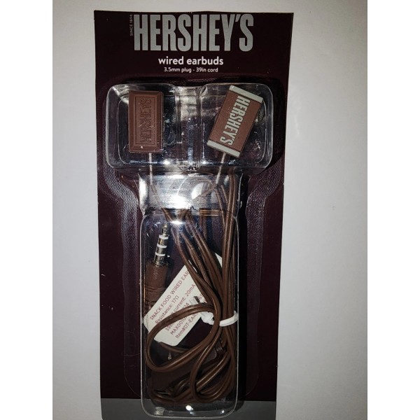 The New Hershey's Ear Buds are a unique and delicious option for those looking for a fun and tasty way to listen to music. These brown earbuds feature the iconic Hershey's branding and are designed for a comfortable in-ear fit. With a 3.5mm jack connectivity and a 39-inch cord length, these wired earbuds are perfect for on-the-go use. Made in the United States, these earbuds come with a double earpiece for a complete listening experience. Sweeten your music with these delicious Hershey's Ear Buds.