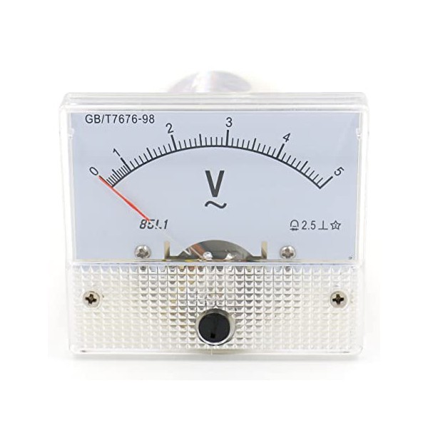 Heschen 85L1-5V Rectangle Panel Mounted Voltage Meter Voltmeter Tester AC 0-5V Class 2.5 White