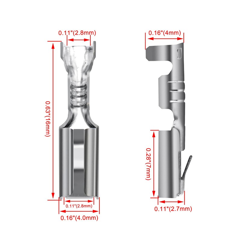 Heschen female spade quick splice crimp terminals 2.8mm crimp connector non insulated 100 pcs