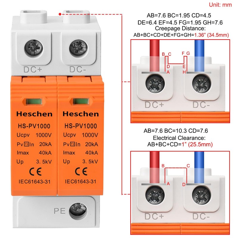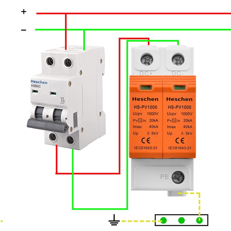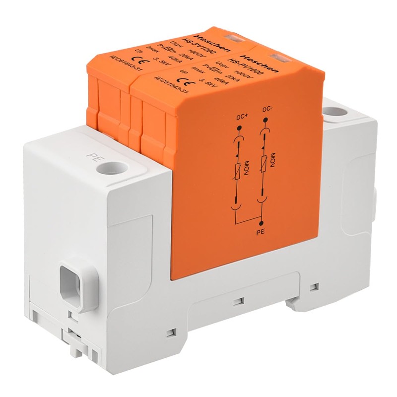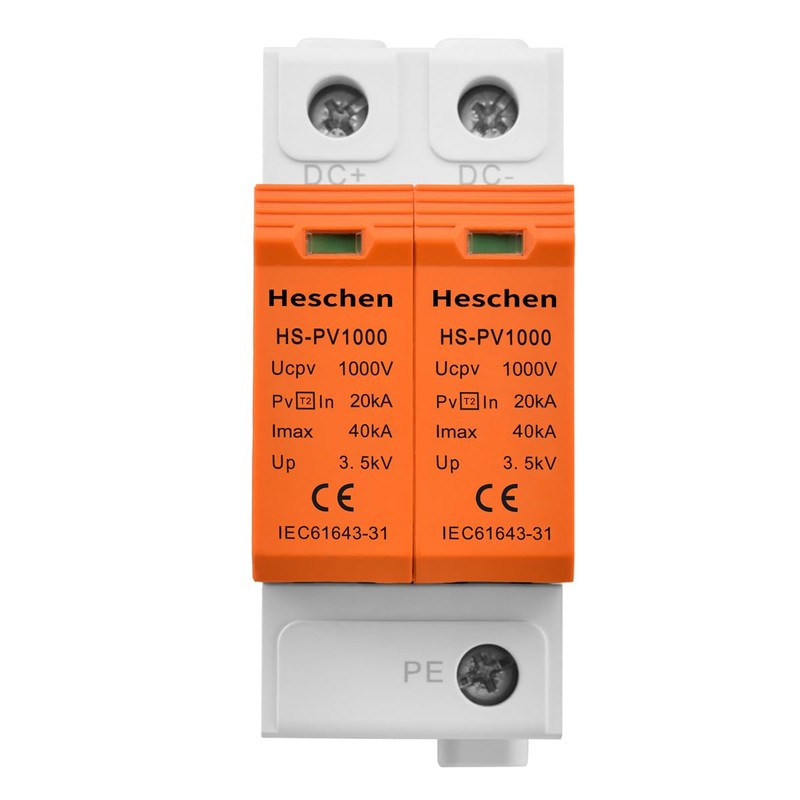 Heschen HS-PV1000 2P 1000VDC 20KA Fire Proof 35mm DIN Rail Mount Surge Protector for PV