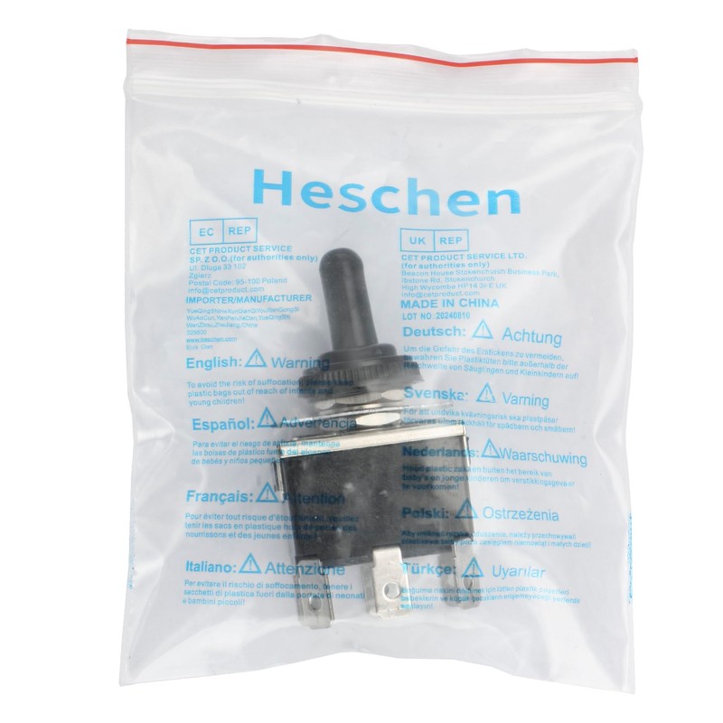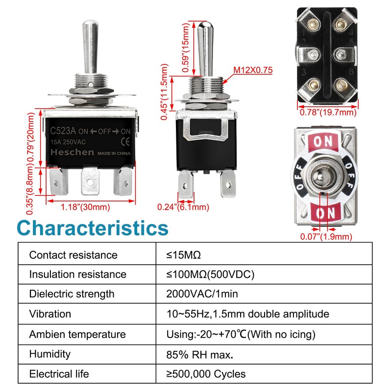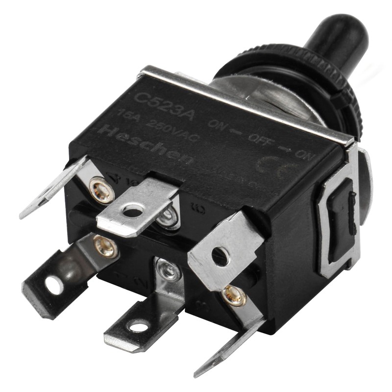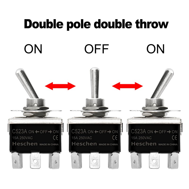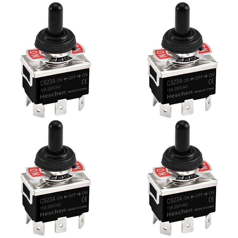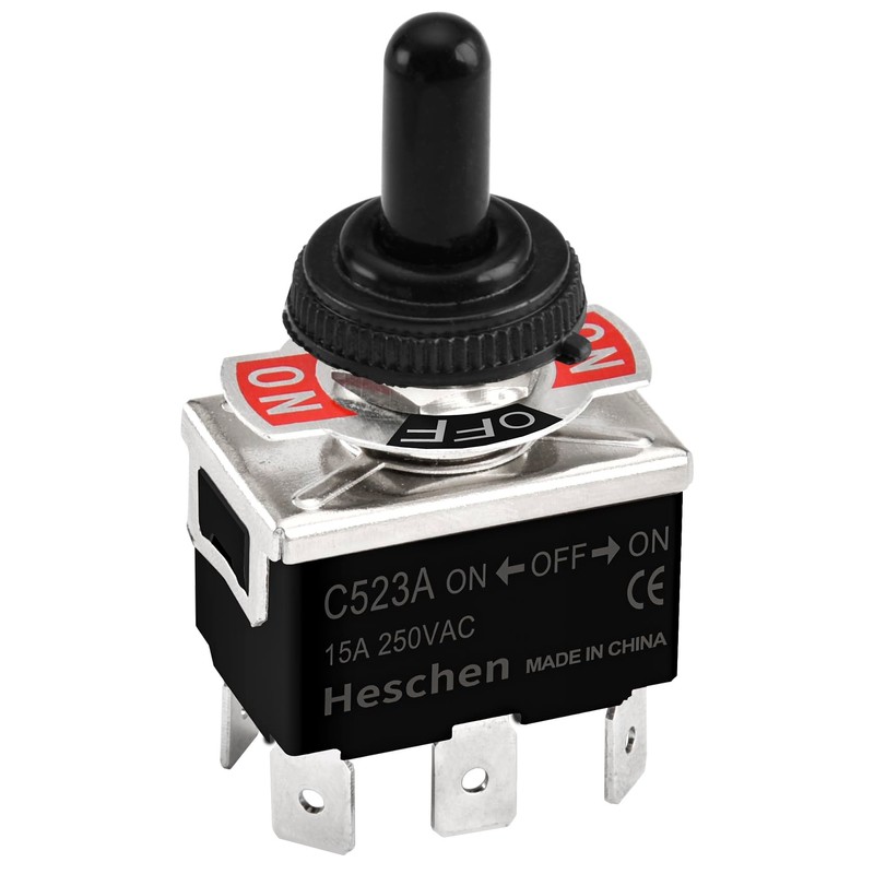 Heschen Metal Toggle Switch, C523A, DPDT, Maintained, ON/OFF/ON 3 position, 15A 250VAC, 6 Tab Terminal, CE, with Waterproof Cap (4)