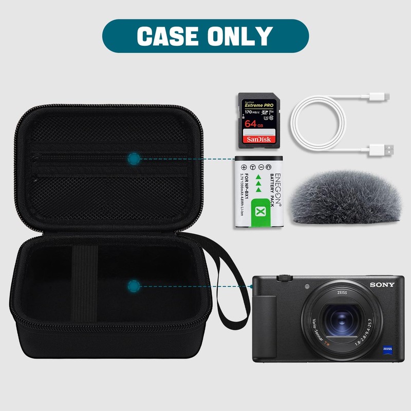 - 【Perfect Fit】Designed for Sony ZV-1/ ZV-1F/ ZV-1 II Digital Camera for Content Creators and Vloggers, this hard-shell camera case boasts a built-in zipper mesh pocket, perfect for storing batteries, card readers, USB cables, and other essential accessories. (Please note: camera and accessories is not included.)
