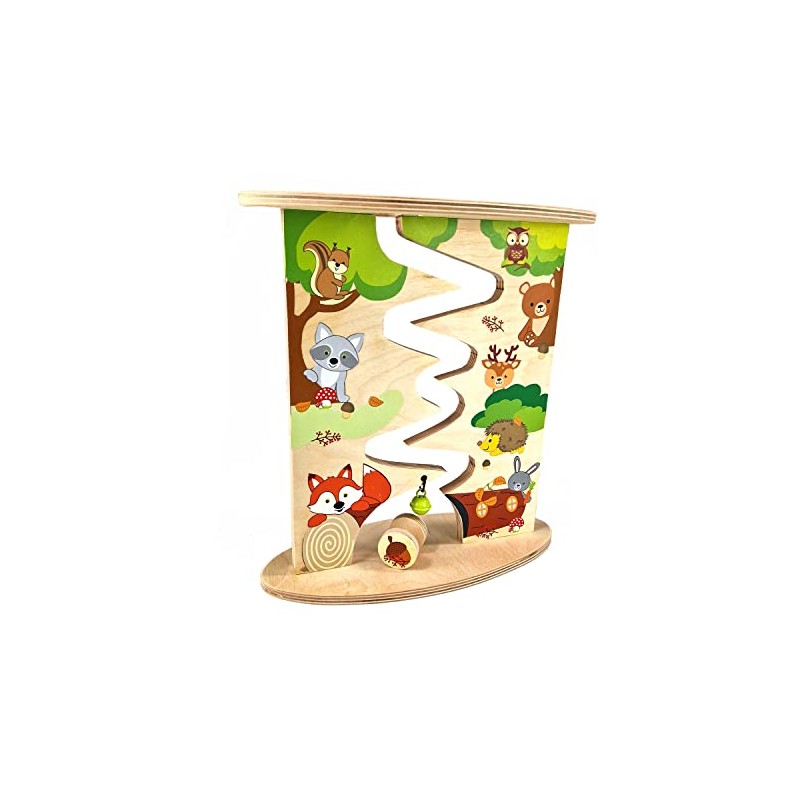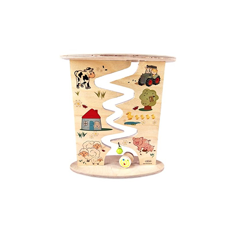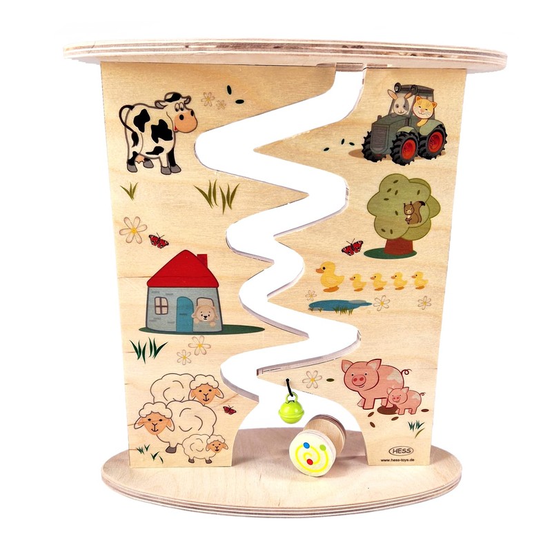 Hess Wooden Toy 31130 - Wooden Roller Track Farm and Fox Made of Wood, Handmade, Dismountable, Suitable for Children from 12 Months, Approx. 26 x 26 x 4 cm, Water-based Paints