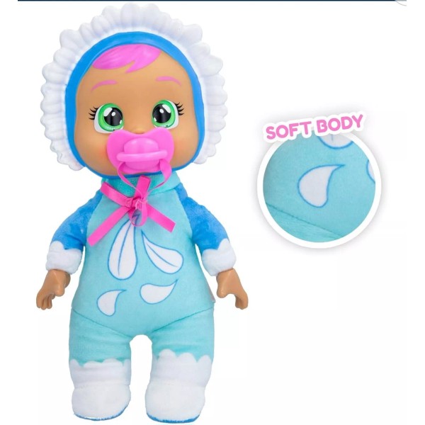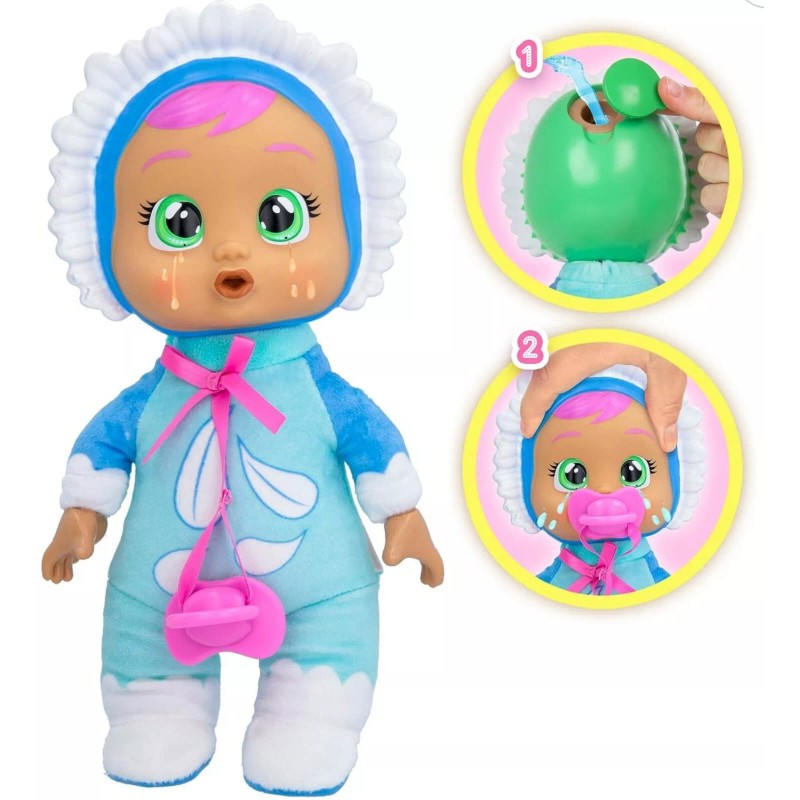 Features and details: Cries real tears! Measures 9 inches tall with a super soft body. Comes with a matching doll and pacifier.